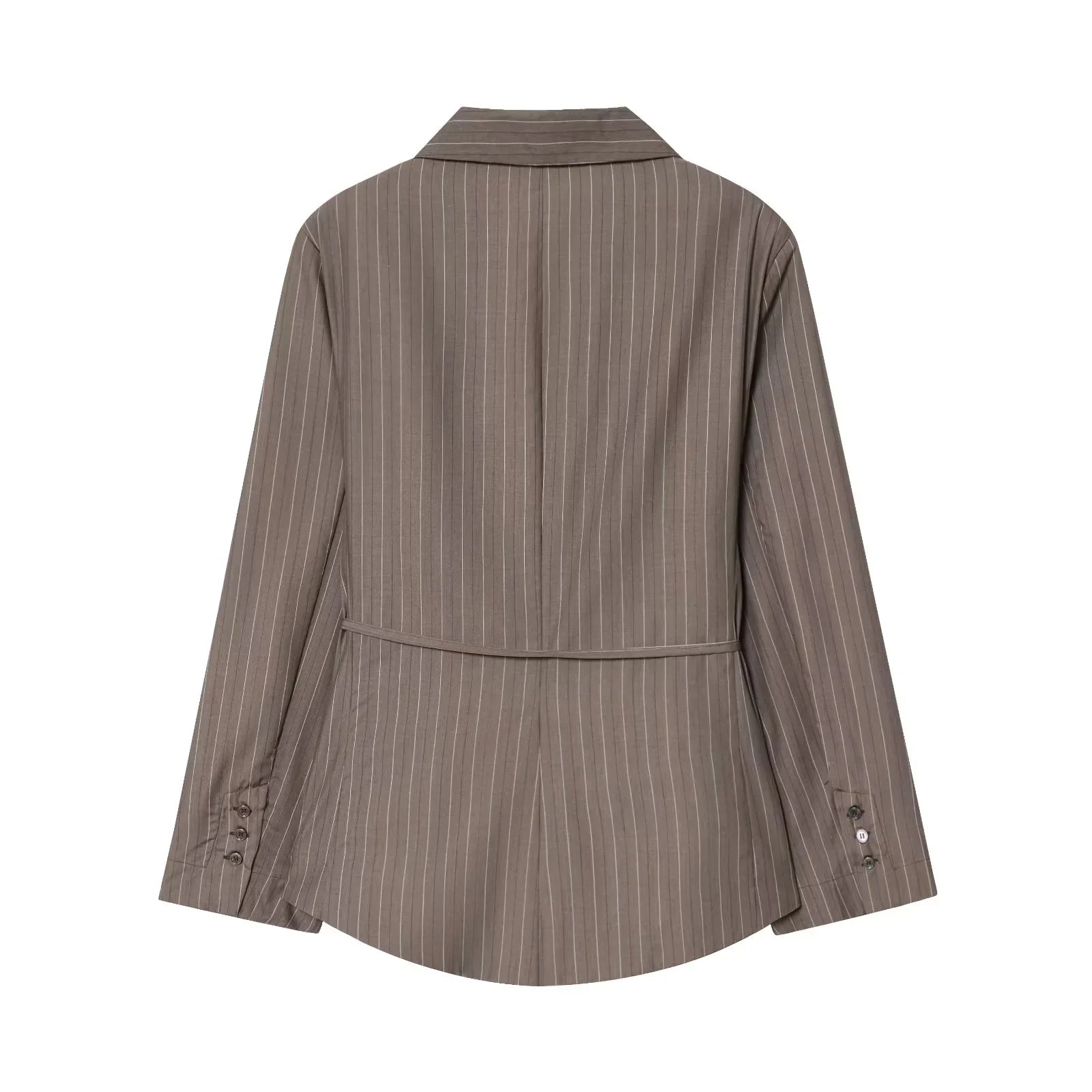 Elegant Brown Sashes Loose Single Breasted Blazers Chic Wide Leg Pant Set