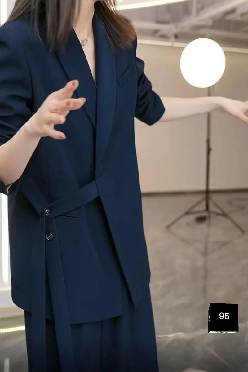 Elegant Loose Blazers Wide Leg Pants Two Piece Tailored Set